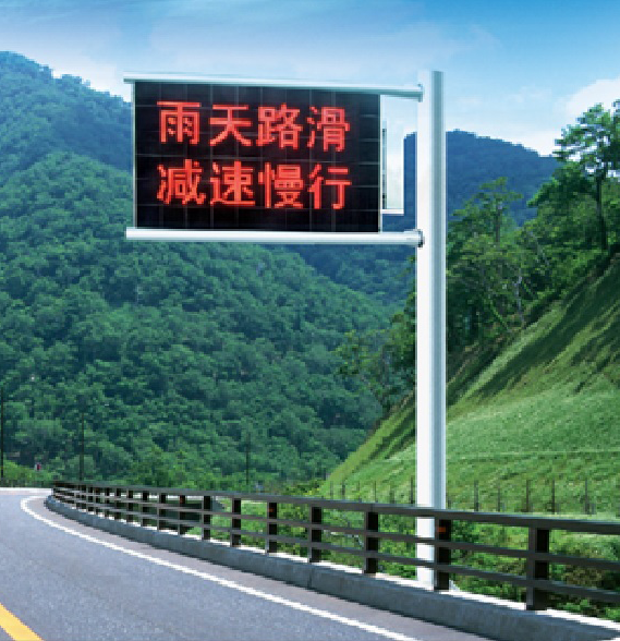 V8410型懸臂式可變信息情報(bào)板由立柱、LED顯示屏、控制器、供電系統(tǒng)、通訊系統(tǒng)組成,安裝于高速公路車道旁,由監(jiān)控平臺(tái)控制,可顯示文字及圖形,用于向駕駛員發(fā)布路況、誘導(dǎo)、宣傳及警示信息。